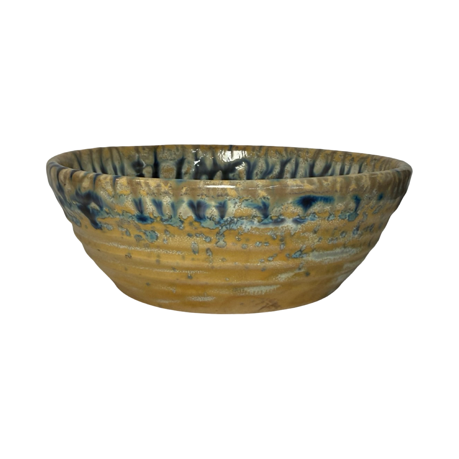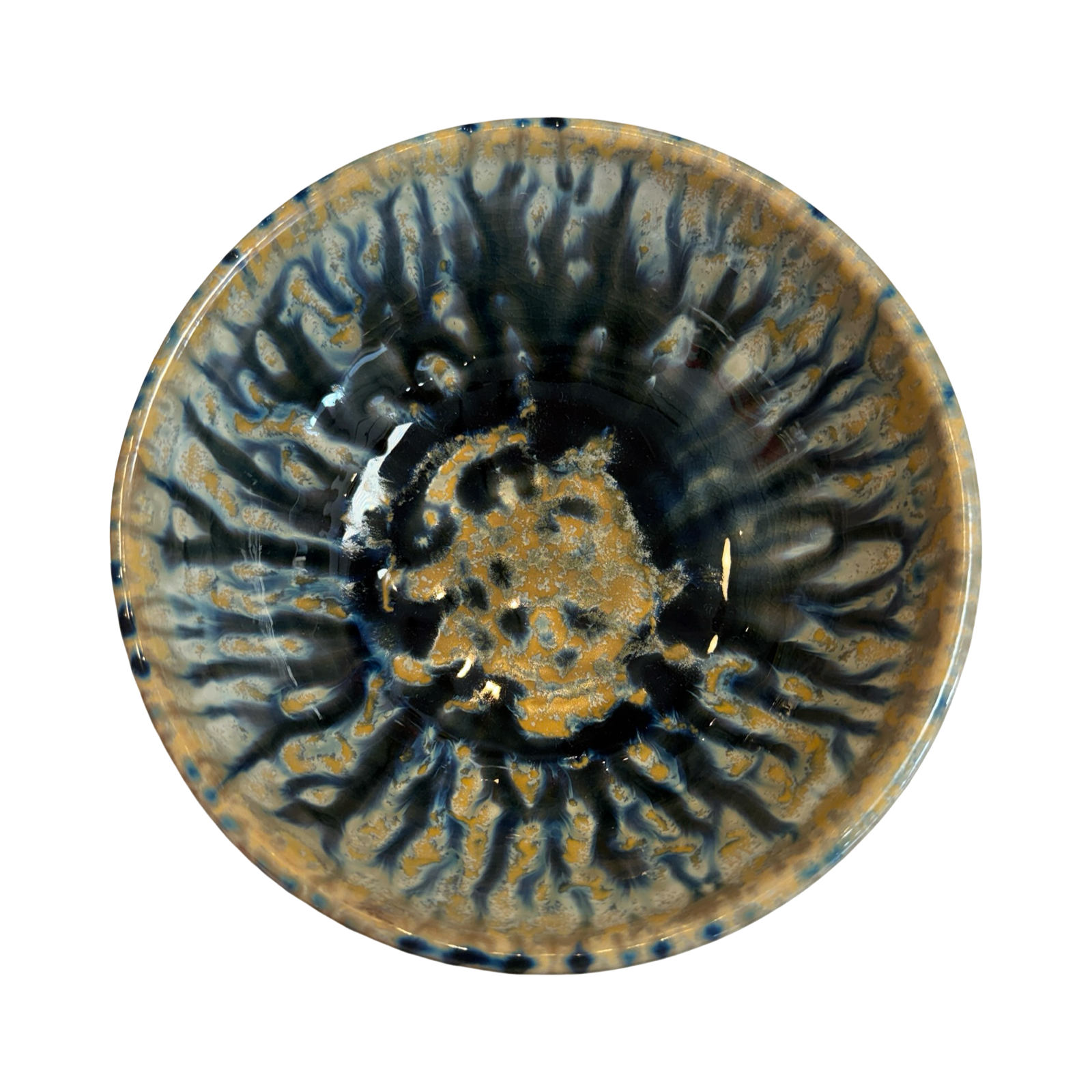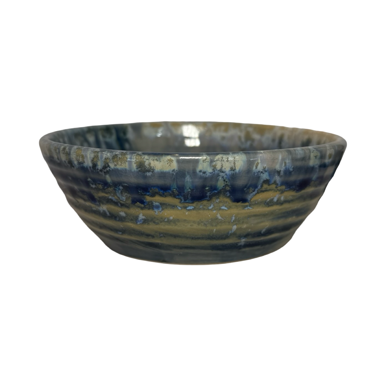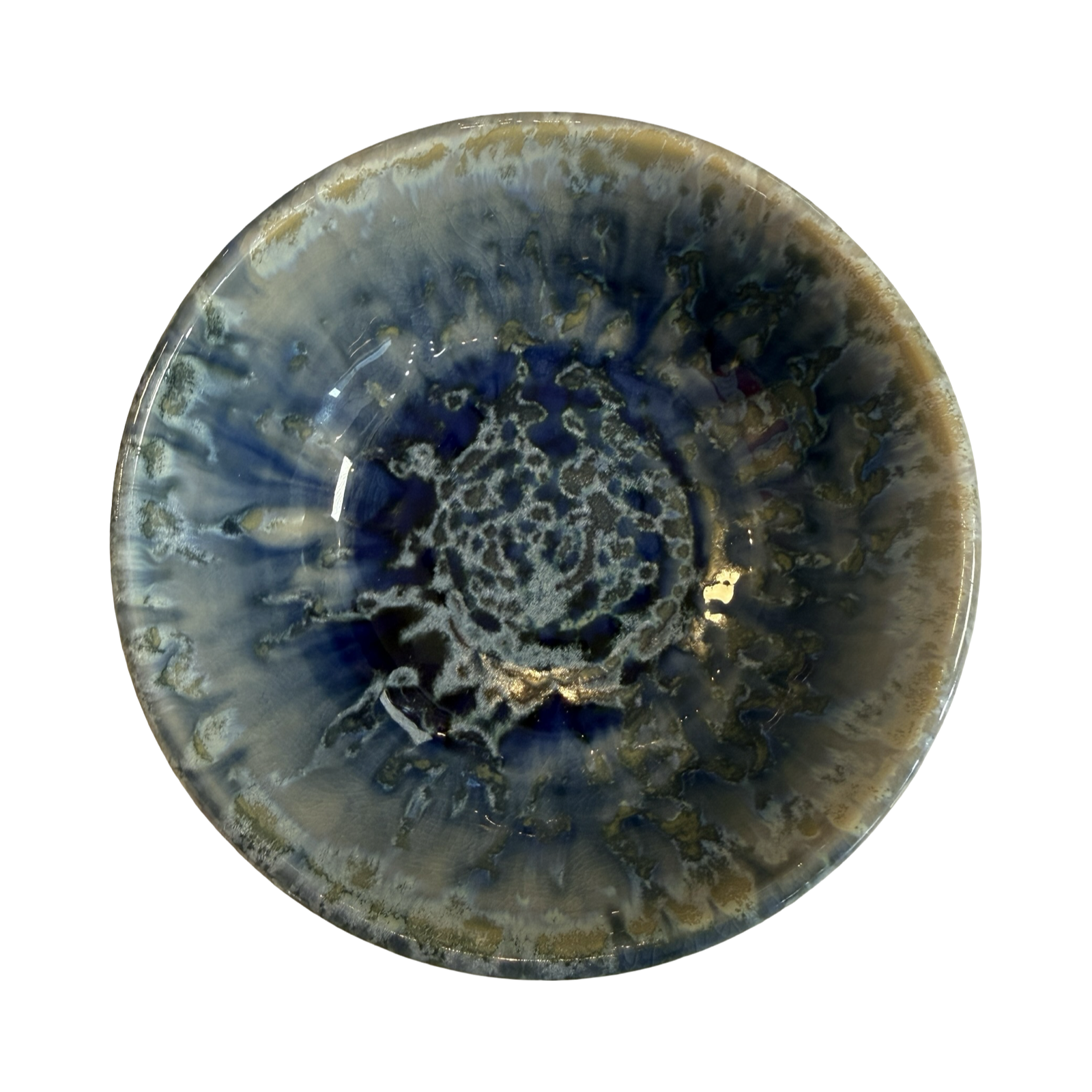 These bowls are handcrafted stoneware pieces finished in layered blue and green glazes that flow and break uniquely in every firing. Organic patterns radiate from the center of each bowl, creating depth and movement reminiscent of water, stone, and mineral deposits. No two bowls are exactly alike.